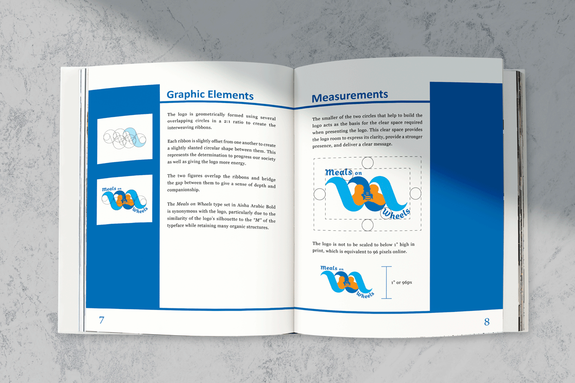 A branding project based around the nonprofit organization, Meals on Wheels. Includes Logo redesign and accompanying graphic standard manual.