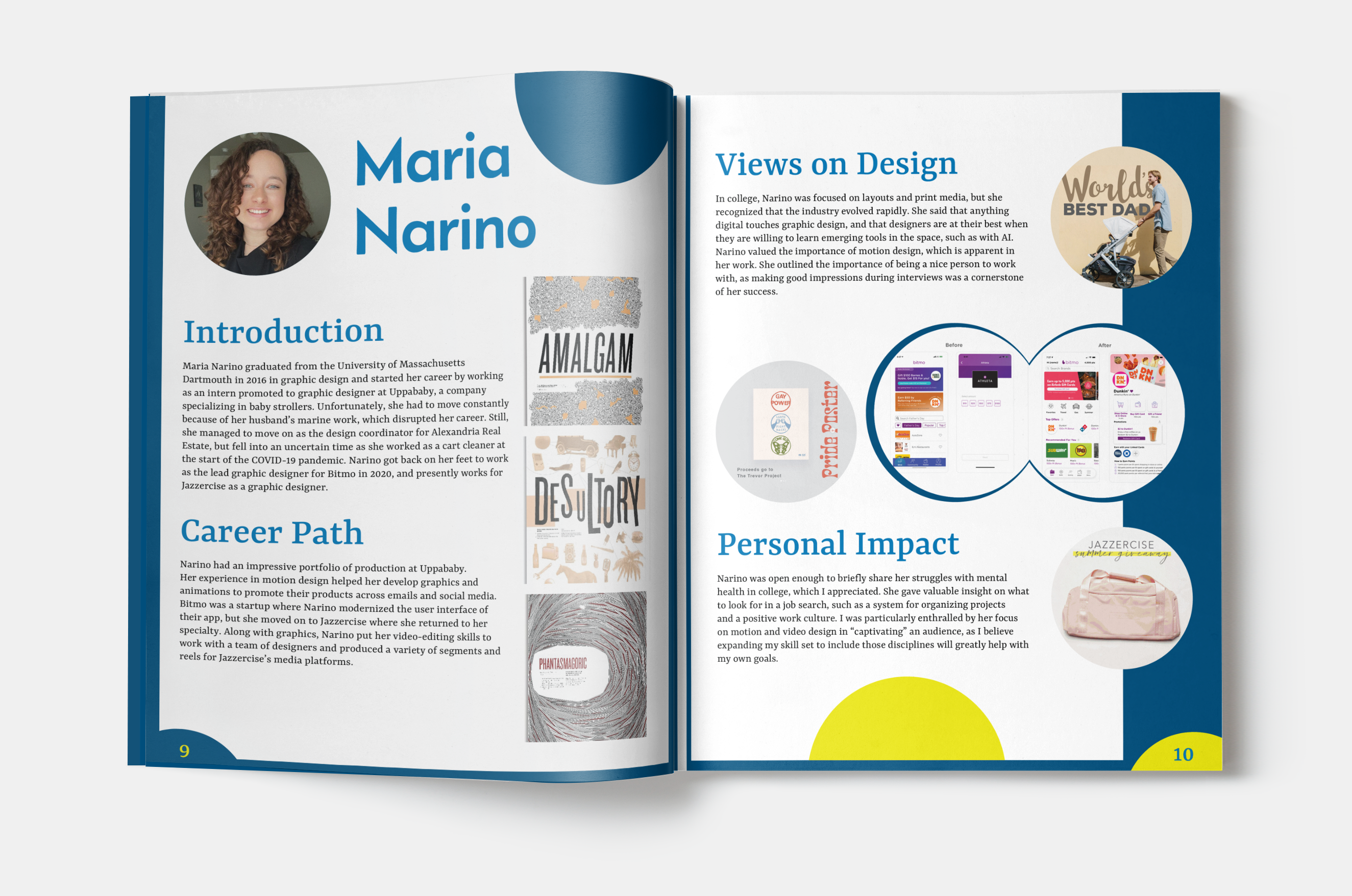 Digital brochure layouts, finalizing layouts, informational hierarchy, and text.