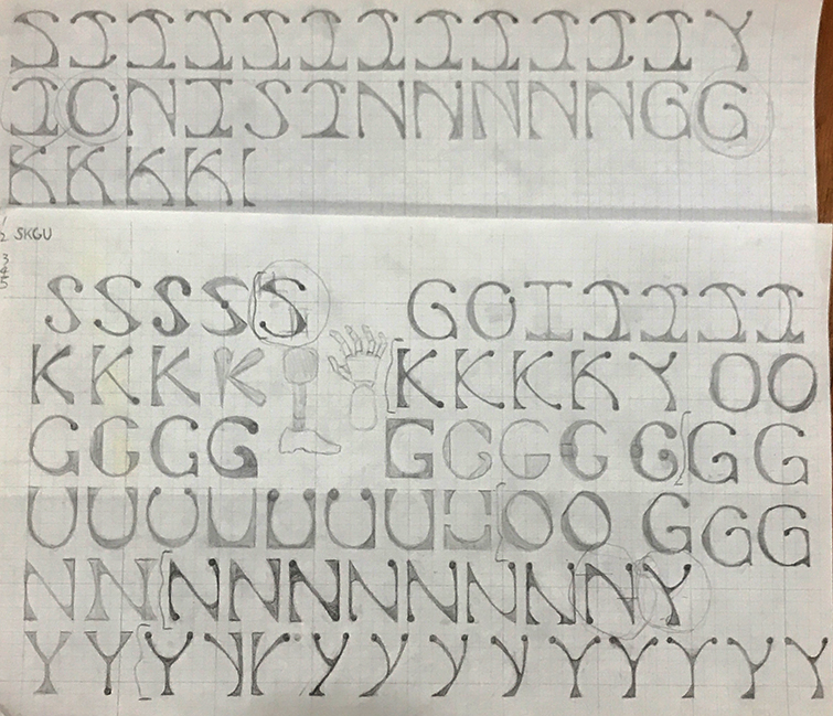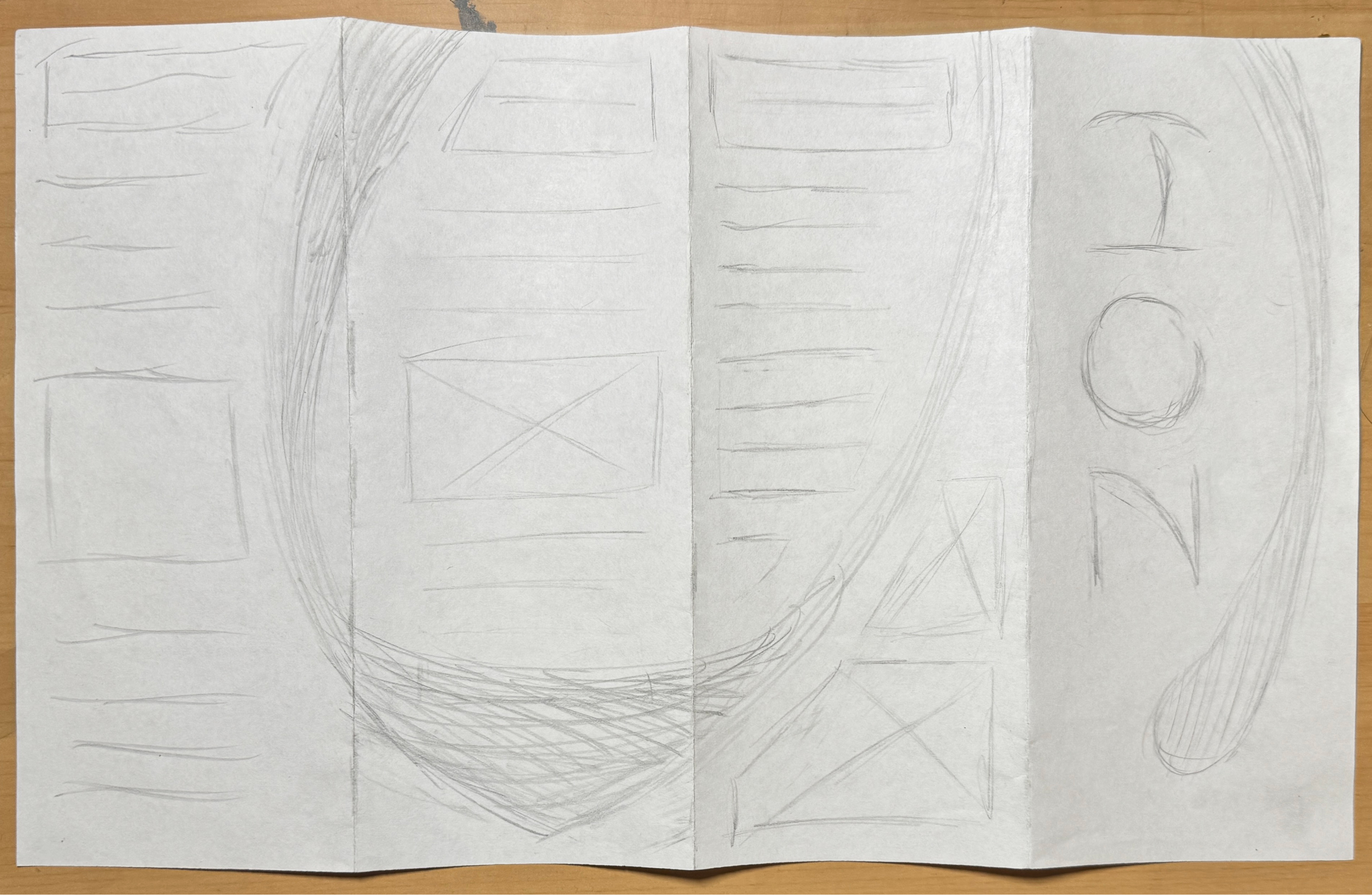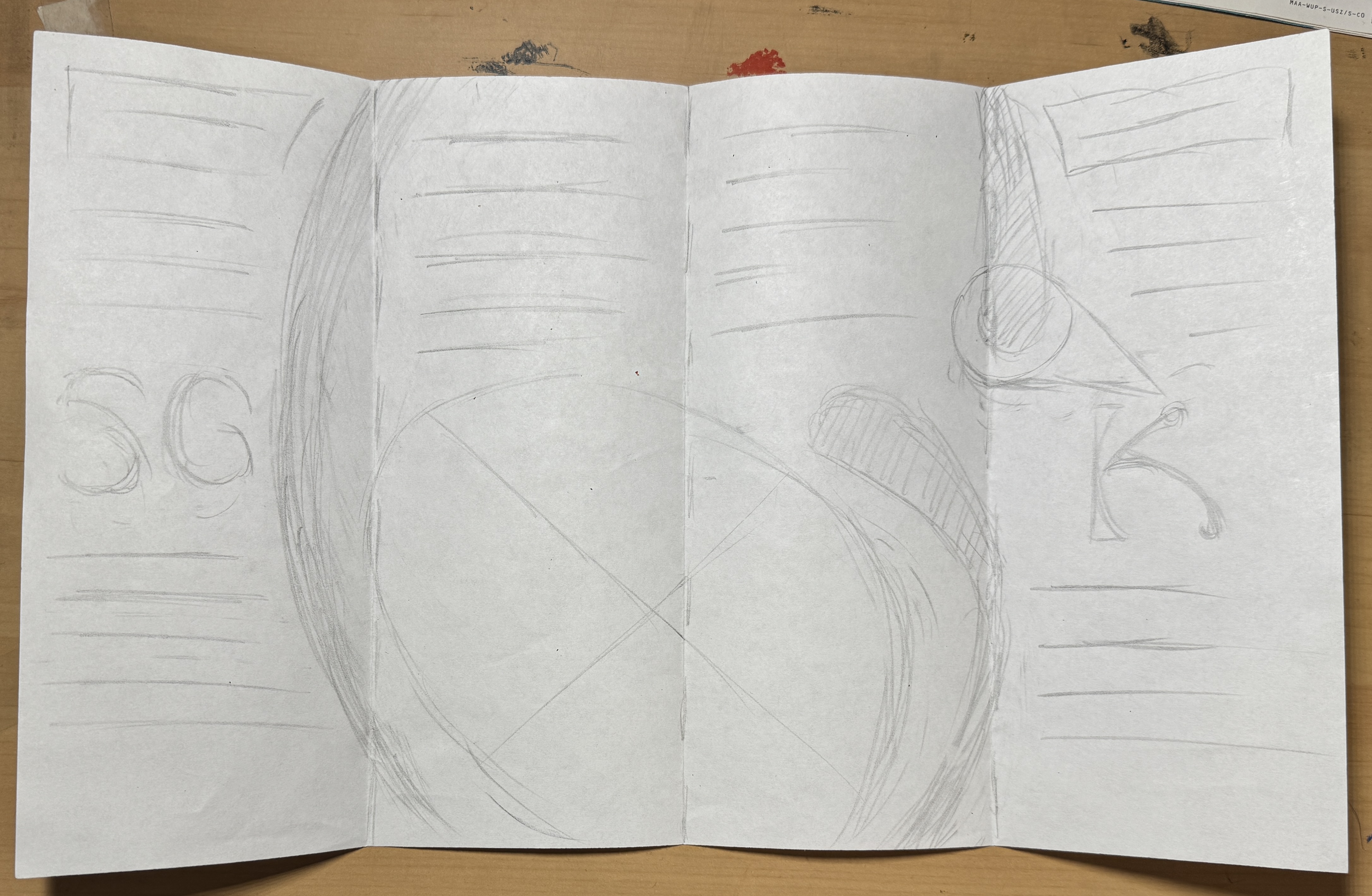Brochure layout progression focused on creative implementation of custom letters and positive and negative space.